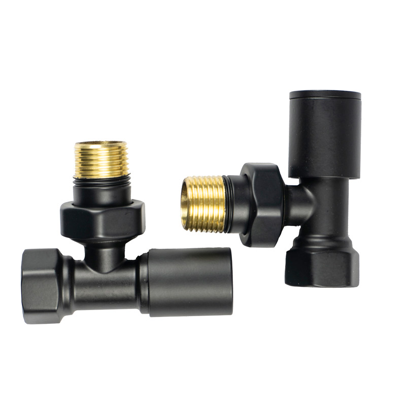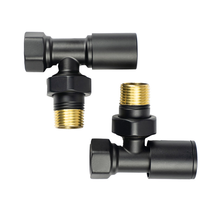 Угловая конструкция обеспечивает удобство монтажа в случаях, когда трубы подведены сбоку, а черное покрытие гармонично сочетается с современными радиаторами. Изделия изготовлены из качественных материалов, устойчивых к высоким температурам и давлению, что гарантирует долговечность в использовании.Характеристики: