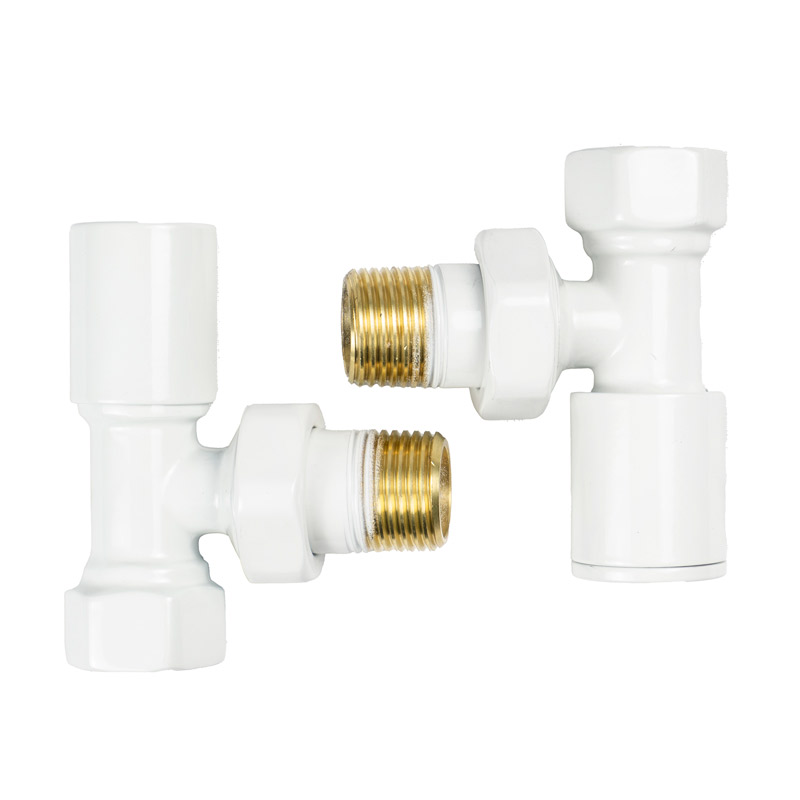 Угловая конструкция обеспечивает удобство монтажа в случаях, когда трубы подведены сбоку, а белое покрытие гармонично сочетается с классическими радиаторами. Изделия изготовлены из качественных материалов, устойчивых к высоким температурам и давлению, что гарантирует долговечность в использовании.Характеристики: