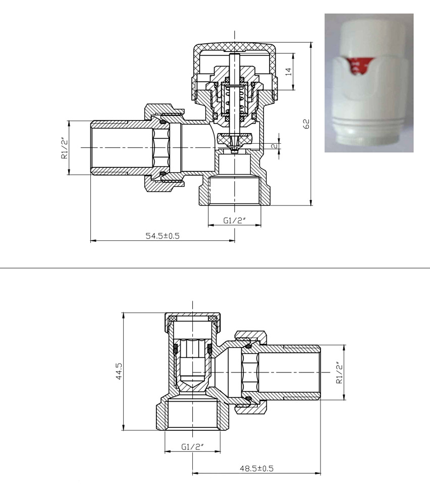 Подробное описание Комплект термостатический угловой белый Warm Well