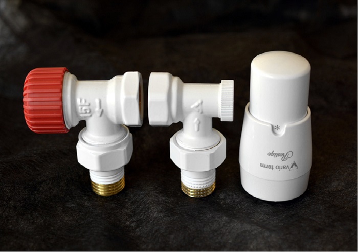 Угловой монтажный комплект Vario Term Elegant White для бокового подключения радиатора или полотенцесушителя. Представленный набор имеет угловую форму и состоит из трех элементов: термостатический клапан, запорный клапан и термоголовка Prestige. Особенностью данного комплекта является его цвет - за доступную цену Вы получите краны для подключения в одном цвете с отопительным прибором.