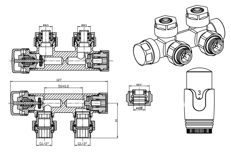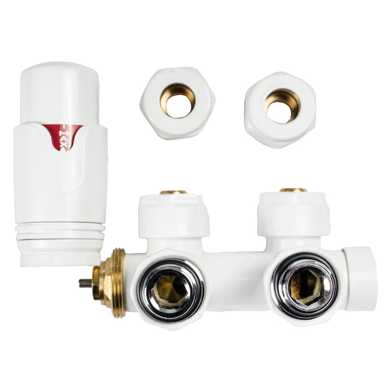 Комплект состоит из термостатического вентиля и термоголовки, которые позволяют автоматически поддерживать комфортную температуру в помещении и обеспечивают экономию энергии. Тип подключения DUOPLEX делает его универсальным вариантом для монтажа на различные виды радиаторов с нижним подключением (между 50 мм).