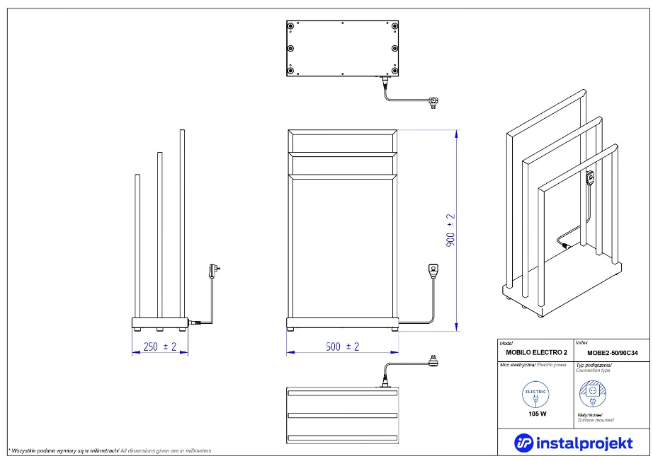 Характеристики товара Полотенцесушитель Install Projekt MOBILO ELECTRO 2