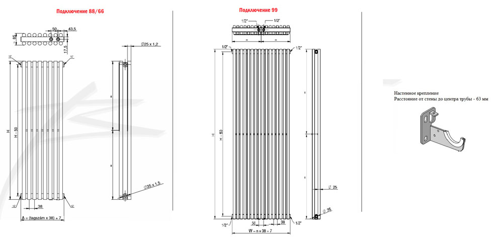 Характеристики товара Горизонтальный трубчатый радиатор Betatherm Praktikum Single