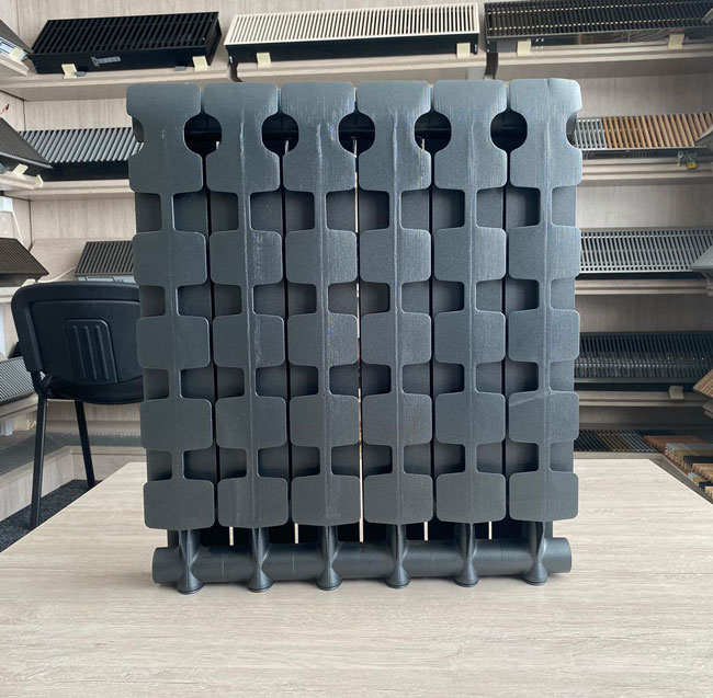 Потрібна була батарея в центральну систему опалення, тому нам порадили не брати трубчасті варіанти. В наявності з заводським фарбування в чорний колір знайшли тільки цю. Виглядає гарно, ще не опалювальний сезон, тому по ефективності поки нічого сказати не можу.