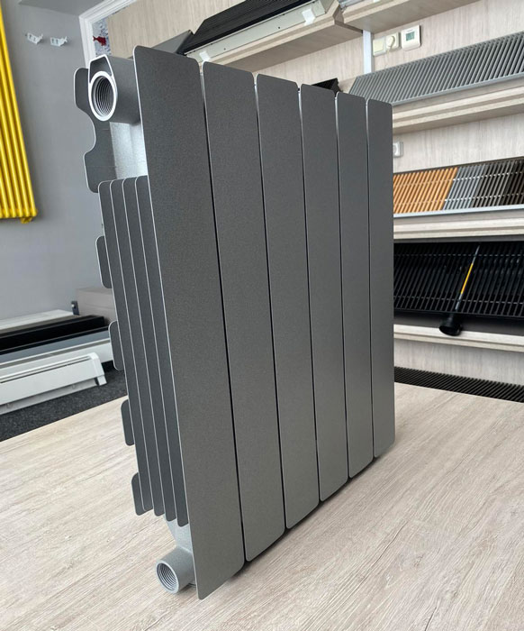 Fondital BLITZ B4 Super Grafit - алюмінієвий радіатор високої якості. Відслідковуючи запити покупців, італійський виробник виконав один із найпоширеніших запитів та створив батарею з алюмінію в оригінальних кольорах. Крім покращення зовнішнього вигляду, в даному приладі модернізовано технічно-теплові характеристики: