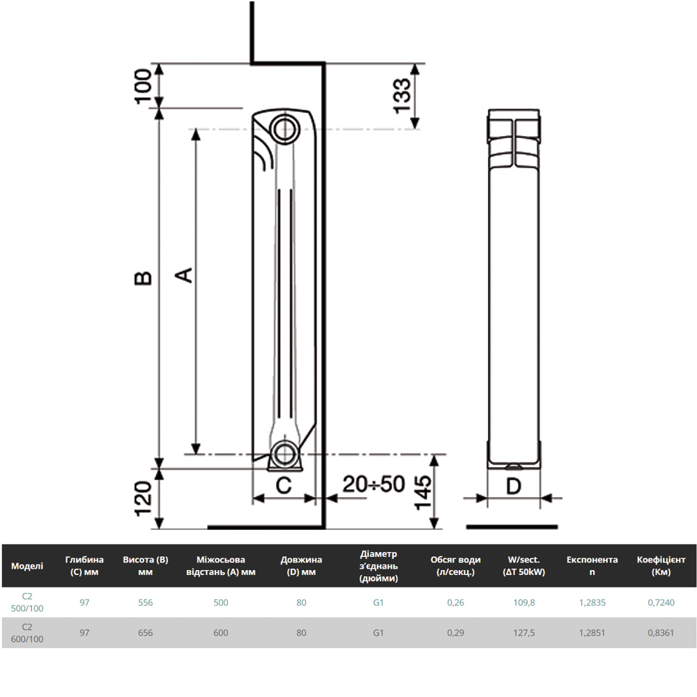 Характеристики товара Алюмінієвий радіатор Libeccio C2