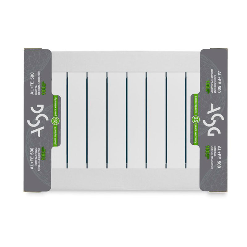 Дизайнерські радіатори ASG з біметалу підходять для будь-яких систем опалення, тому що витримують найвищий тиск у 30 атмосфер. Представлена батарея виготовлена на українському заводі на сучасному обладнанні з якісних сертифікованих матеріалів (стандарт якості ENAB46100). Виробник гарантує роботу приладу більше 50 років.