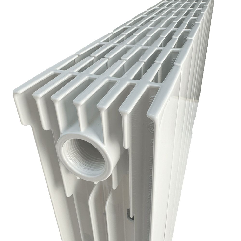 Радіатор складається з декількох набірних секцій. Випускається 2 типорозміри радіаторів з висотою: з міжосьовою відстанню 300 мм та 500 мм. Одна секція з міжосьовою відстанню 500 мм має вражаючу тепловіддачу 232 Вт. Конструкція радіатора забезпечує ефективний конвективний теплообмін. Зовнішня поверхня гладка та рівна. Внутрішні поверхні пристрою надійно захищені від корозії. Сердечник із високоякісної сталі дозволяє витримувати тиск до 30 атм.