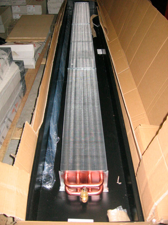 Іноді клієнти не хочуть конвектори з вентиляторами. Стандартний конвектор 230.1750.90 без вентилятора під вікно дає 450 Вт при подачі 70С, цього мало, можемо взяти посилений конвектор 380.2000.90 з двома рядним теплообмінником, але це буде ризиковано. Іноді буває, що теплоносій у трубі нижче 70С, і ефективність конвектора відразу знижується. Тому в даному випадку як джерело єдиного обігріву краще взяти конвектор з вентилятором!