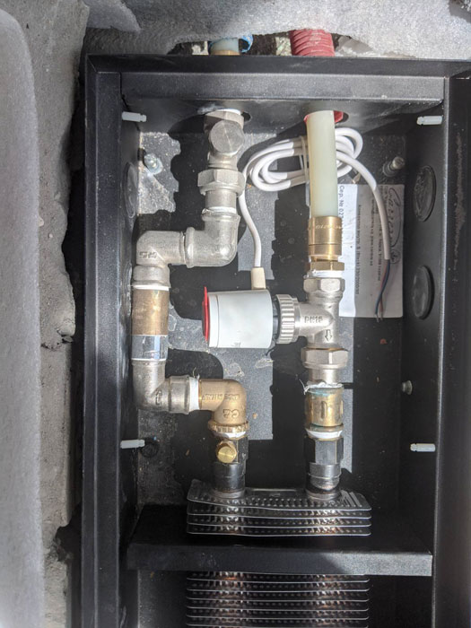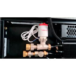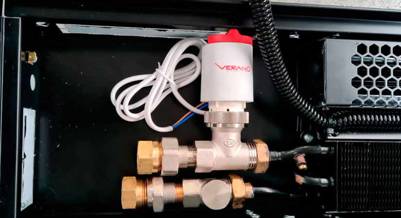 Підключення з сервоприводом або термоголовкою з виносним датчиком - провівши гідравлічне приєднання, у разі потреби, якщо необхідно керувати конвектором, то додатково підключаємо автоматику, термоголовка з виносним датчиком або сервопривід і термостат під нього, за допомогою чого в автоматичному режимі клапан відкривається або за клапан від встановленої температури у приміщенні.