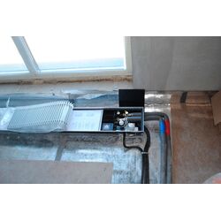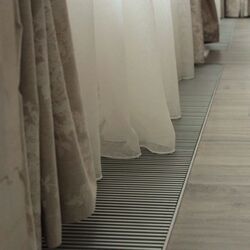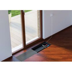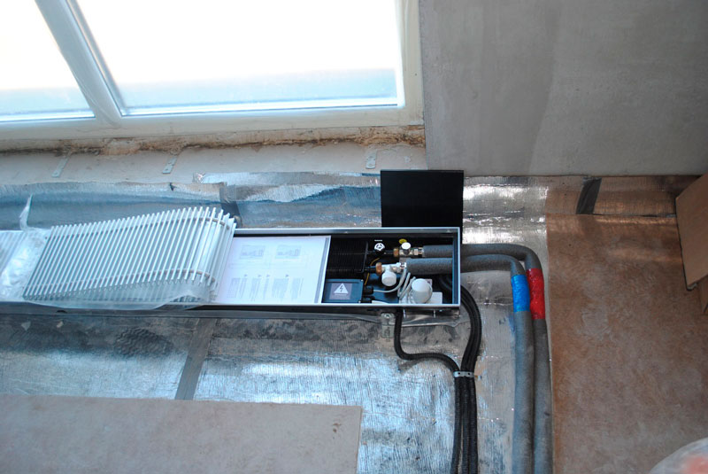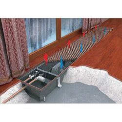 Розташування внутрішньопідлогового конвектора до вікна з природною конвекцією універсальна, конвектор можна підключати лівостороннє і правостороннє, його можна розвернути, так як теплообмінник знаходиться посередині. Якщо теплообмінник ближче до краю конвектора, то розміщуйте таким чином, щоб теплообмінник знаходився ближче до кімнати.
