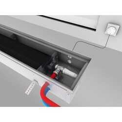 Якщо у вас конвектор з вентилятором, додатково необхідно підключити електрику до конвектора, щоб була можливість керувати вентиляторами. До кожного конвектора купується додатковий модуль конвектора, у народі називається трансформатором, куди необхідно завести 220 В, а від нього вже йде 220 В на вентилятори або 12 В, залежно від виробника. Також за допомогою цього модуля здійснюється керування кімнатним термостатом і навпаки. Термостат автоматично дає команду увімкнути вентилятор, якщо температура в приміщенні впаде нижче заданої на термостаті. Кімнатний термостат вимірює температуру в приміщенні за допомогою вбудованого датчика та підтримує її значення на рівні заданої величини. Паралельно з цим кімнатний регулятор може керувати сервоприводами, а також регулювати швидкість обертання вентилятора. Про це ви можете прочитати в статті про управління внутрішньопідлоговими конвекторами.