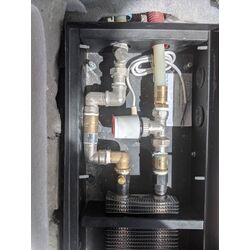 Жорстке підключення - підключення за допомогою подавального клапана, це може бути ручний радіаторний кран, кульовий кран, термостатичний клапан, на зворотку встановлюється зворотний, запірний клапан. Жорстке підключення більш надійне, менший ризик того, що система почне текти, ніж через гнучкі шланги, які мають менший термін експлуатації ніж труби, які не рухаються. Приклади монтажу внутрішньопідлогових конвекторів можна подивитися нижче, у вигляді фотогалереї.