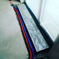 Візьмемо найпоширеніший вид установки внутрішньопідлогової батареї, це бетонну стяжку. Для того, щоб конвектор був встановлений правильно і без проблем, необхідно створити під нього нішу.