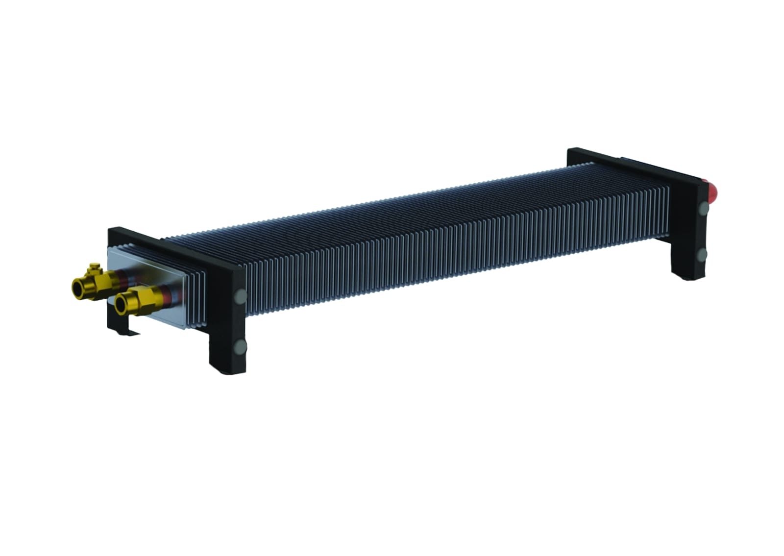 Для підключення фанкойлів із природною конвекцією до системи опалення досить гнучких шлангів та кульових кранів. Розмір підключення – 1/2".