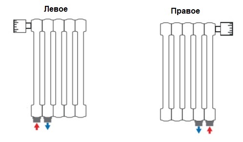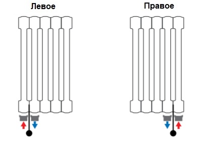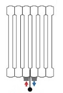Вертикальні радіатори передбачають нижнє підключення, адже встановивши дизайнерський високий прилад зовсім не хочеться псувати його зовнішній вигляд трубами, які будуть видно на висоті 1,5-2 м. Найпопулярнішим нижнім підключенням вважається центральне або одностороннє (ліве/праве) з міжосьовою відстанню 50 мм .