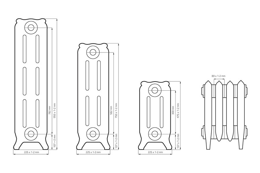 Чавунний радіатор BRISTOL — служіння людям для душевної гармонії. Унікальні, за своїм дизайном, радіатори Bristol, що мають відмінні технічні параметри, здатні створити в будь-якому приміщенні непередавану атмосферу палаців і садиб XVIII-XIX століть. Витіюватий, трохи пихатий візерунок, у стилі бароко, що прикрашає поверхню радіатора нагадує про пишне оздоблення палаців тієї епохи, а незвична форма радіатора додає вишуканих штрихів у загальну картину неповторного дизайну.
