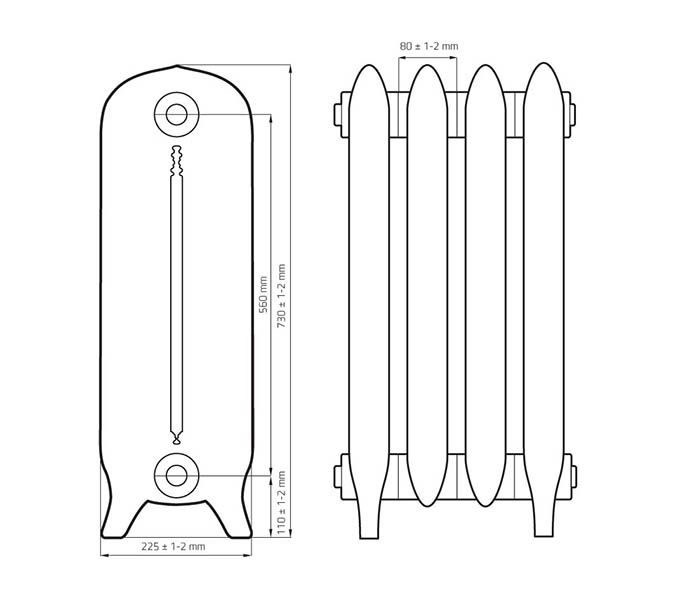 Завдяки бічному підключенню, дизайнерські радіатори Preston, дуже зручно підключати в передбаченому для цього місці, вашій квартирі або заміському будинку. При цьому, необхідну кількість секцій, ви можете вибирати самі - від 3 до 16. Від кількості секцій залежить, як вага виробу так і тепловіддача.
