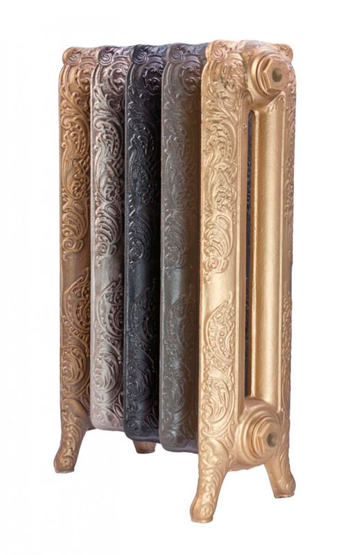 Чавунний радіатор Windsor — розкішні, величні, прикрашені візерунком в стилі Еклектика, що розвинувся в Росії в XIX віці. Малюнок починається акуратними завитками, що переходять у незвичайний орнамент, що чимось нагадує квіти. Високі та низькі секції не виглядають безпорадним елементом завдяки своїм масивним ніжкам, але при цьому абсолютно не виглядають громіздко. Одночасно розкішний та практичний радіатор WINDSOR доповнить будь-яке приміщення, а наші майстри підберуть ідеальне кольорове рішення для будь-якого інтер'єру, у тому числі й у золоті. З WINDSOR RETROstyle у вашому будинку оселиться атмосфера імператорської величності, витонченості та тепла. Вони виготовляються шляхом художнього лиття. За основу взято моделі радіаторів кінця 18-го – початку 19-го століть. Гармонійно поєднують у собі традиційну надійність та довговічність чавуну з класичним та елегантним дизайном.