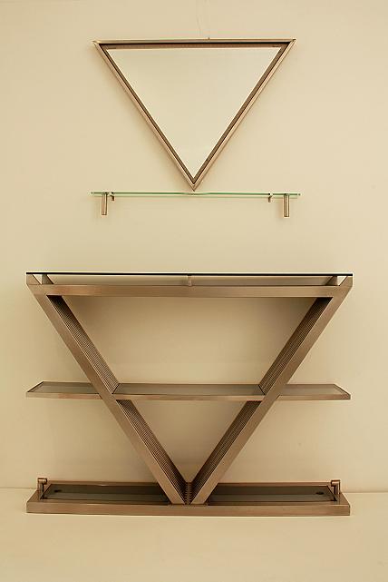 Aeon Elixir - дизайнерський радіатор із нержавіючої сталі англійського виробництва. Форма даного приладу опалення зовсім не схожа на звичну батарею - складається з двох трикутників, які можна використовувати як полички.