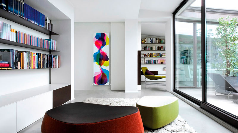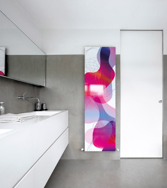 Тепло вібруючої енергії, світла та кольору. Карим Рашид, один із найзначніших персонажів серед законодавців у світі міжнародного дизайну, дав життя автентичним нагрівальним картинам, витвори зі сталі, вставленим безпосередньо в литовий матеріал. Прекрасне поєднання тепла і кольору .