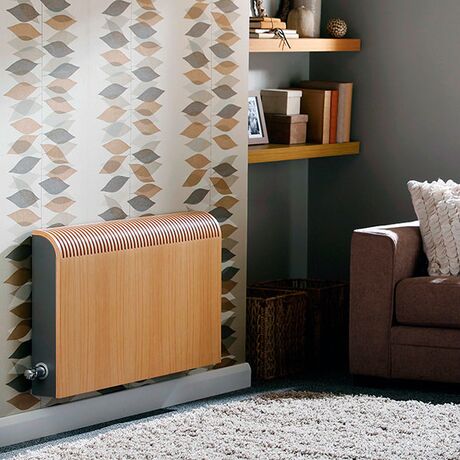 Сміливість погляду. Виклик прийнято, задумано немислиме, очевидні рішення відкинуті. Knockonwood ("постукайся по дереву") робить виклик, дивує, він вражає новизною, спокушає. По-перше, завдяки тому, що йому невластиво. Він не зроблений із сталі, він – дерев'яний. Простий, з теплого дерева, що любовно згинається вздовж стіни. Knockonwood справляє враження своїм суворим, без надмірностей, дерев'яним корпусом. Технологія Low-H2O гарантує відмінну тепловіддачу. З динамічним нагнітачем чи без. Вам не доведеться стукати по дереву. З Knockonwood Вам буде тепло та затишно. Гарантовано.