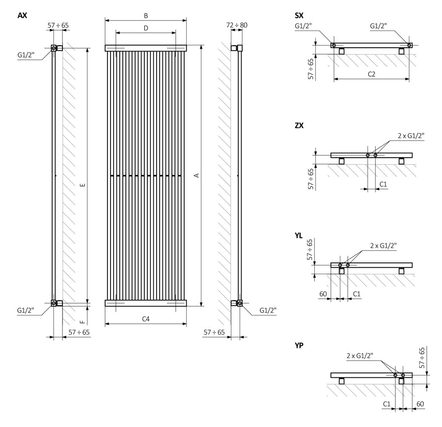 - Тип конструкції – труби-колектори, вертикального розташування; має високу теплову потужність і хорошу тепловіддачу. Всі моделі мають великі габаритні параметри, але виглядають легко та витончено.