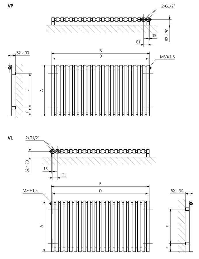 - Конструкція - вертикальні прямокутні трубки 30*40 мм приєднані до круглих колекторів діаметром 25 мм.