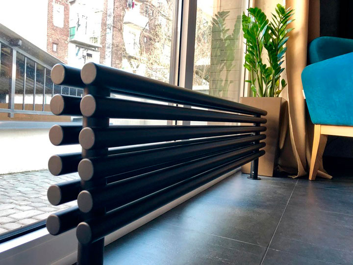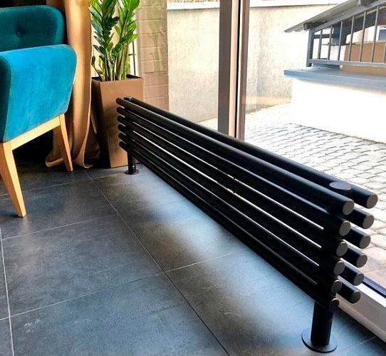 - Покриття поверхні підлогового радіатора – високоякісна порошкова фарба.