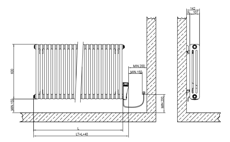 Трубчастий радіатор Cordivari Ardesia Electric класичної форми працює від електромережі. Електричні радіатори чудово рятують у приміщеннях, де немає можливості зробити розведення труб для водяного опалення, а також у випадках, коли в приміщенні недостатньо тепло і потрібне додаткове джерело опалення. Радіатор поставляється у стандартному білому кольорі, за бажанням клієнта можна замовити заводське фарбування в інший колір із доплатою 30%. Термостат із теном для нагрівання теплоносія купується окремо.
