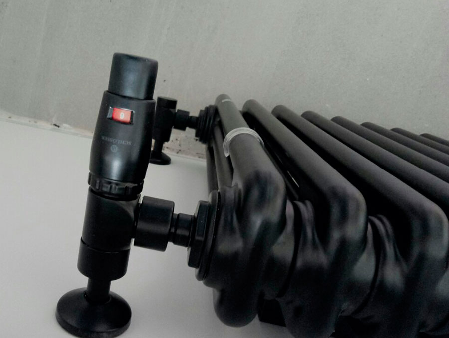 Вкручуємо трубу у внутрішнє різьблення - надягаємо декоративну розетку - за допомогою труборіза обрізаємо трубку до потрібної вам довжини - за допомогою різьбового з'єднання підключаємо радіаторний клапан.