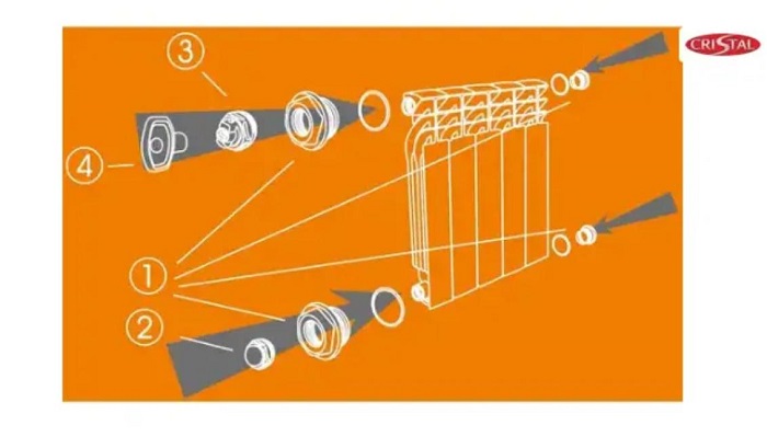 Характеристики товара Комплект футорок для секційного радіатора CRISTAL NR-2011