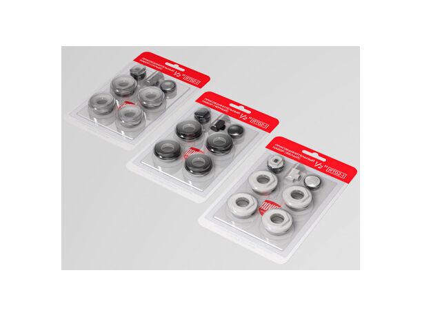 Комплект футорок Royal Thermo рекомендується використовувати для секційних радіаторів з біметалу цього ж виробника. Набір має 2 варіанти розміру та 3 варіанти кольору. Кольори Silver Satin (срібний), Bianco Traffico (білий) і Noir Sable (чорний) ідеально підійдуть для радіаторів Piano Forte і BiLiner - біметалічних радіаторів із заводським фарбуванням.