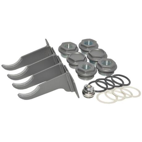 Комплект підключення радіатора опалення Fondital – це надійне рішення для встановлення біметалічних та алюмінієвих батарей. У набір входять футорки та кронштейни, необхідні для правильного монтажу. Всі деталі пофарбовані в колір радіатора, завдяки чому комплект виглядає сучасно і гармонійно поєднується з радіатором.