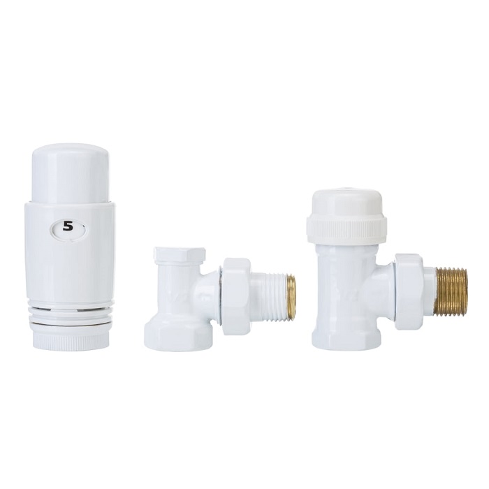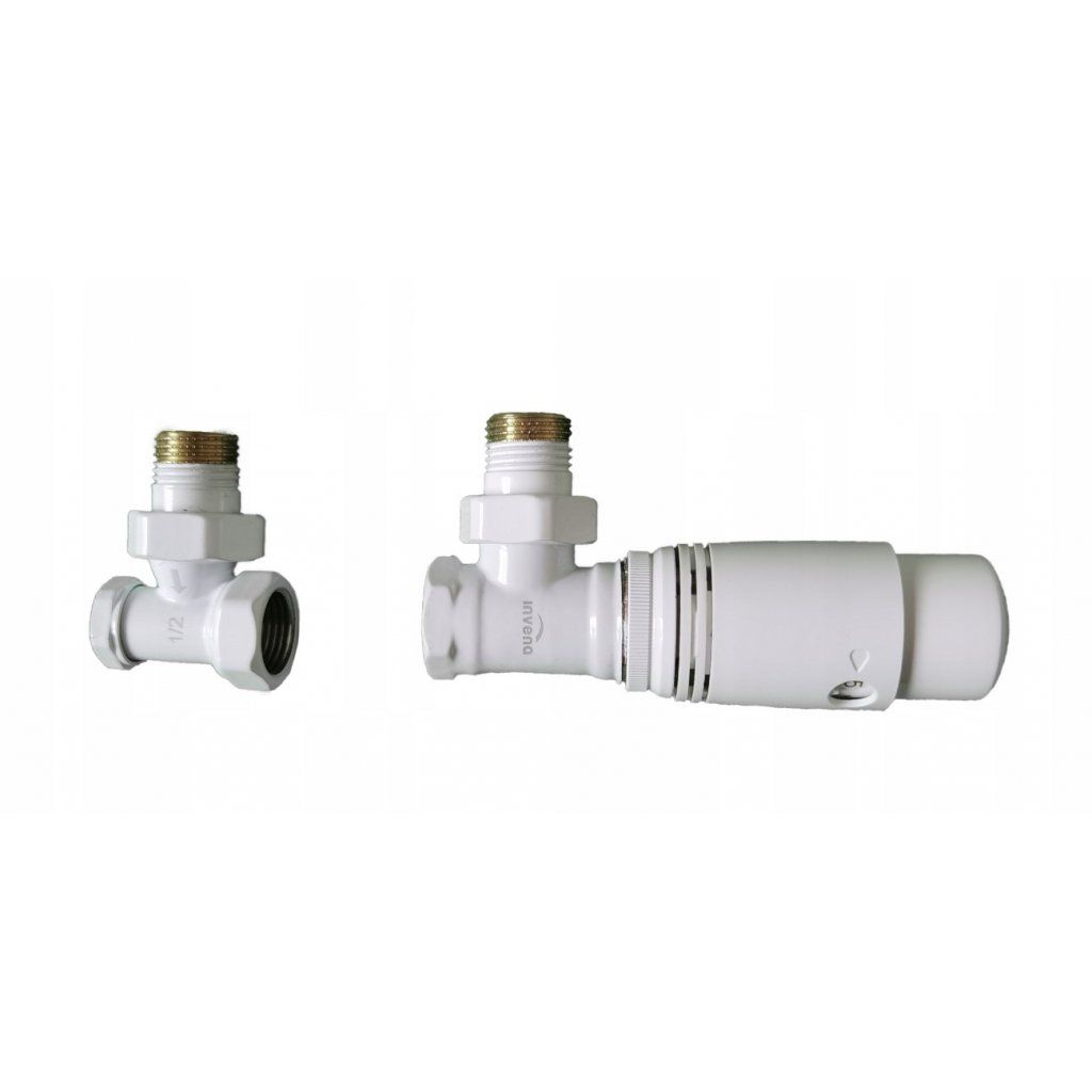 Термостатичний комплект Invena CD-77-K15 (білий) для бокового підключення радіатора. Ідеально доповнює красиві дизайнерські прилади у білому кольорі. Набір складається з термостатичного крана на подачу, запірного крана на зворотку та термоголовки. З його допомогою можна автоматично регулювати комфортну температуру у приміщенні.