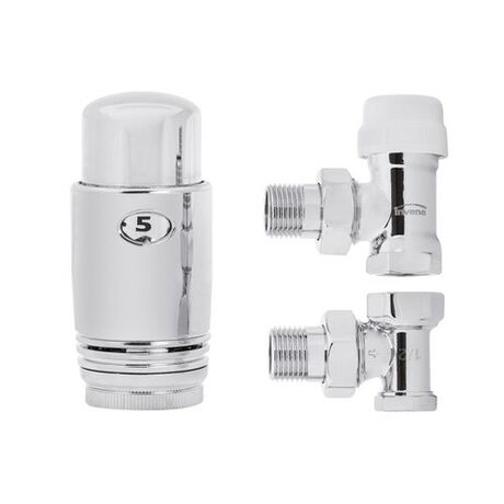 Термостатичний комплект Invena CD-79-K15 (хром) для бокового підключення радіатора. Ідеально доповнює красиві дизайнерські прилади опалення в кольорі. Набір складається з термостатичного крана на подачу, запірного крана на зворотку та термоголовки. З його допомогою можна автоматично регулювати комфортну температуру до приміщення.