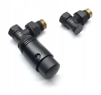 Термостатичний комплект Invena CD-81-K15 у чорному кольорі для бокового підключення радіатора. Ідеально доповнює красиві дизайнерські прилади опалення в кольорі. Набір складається з термостатичного крана на подачу, запірного крана на зворотку та термоголовки. З його допомогою можна автоматично регулювати комфортну температуру до приміщення.
