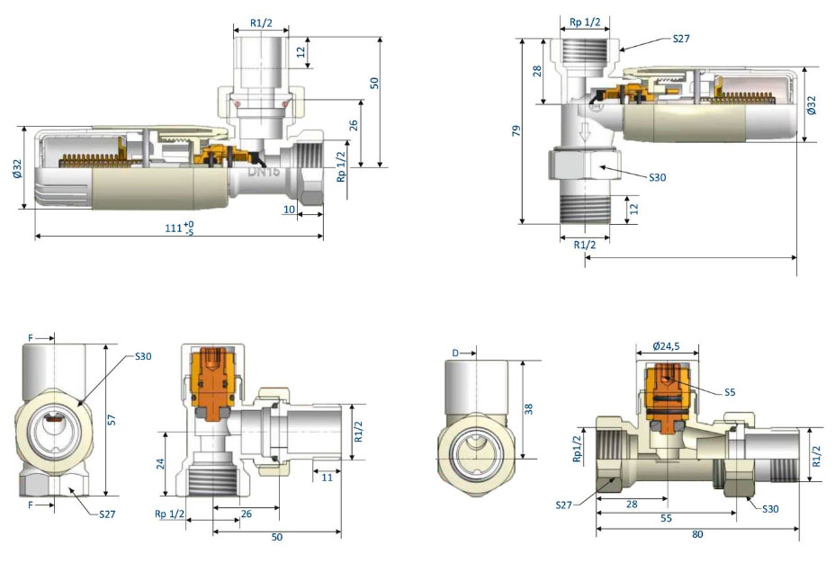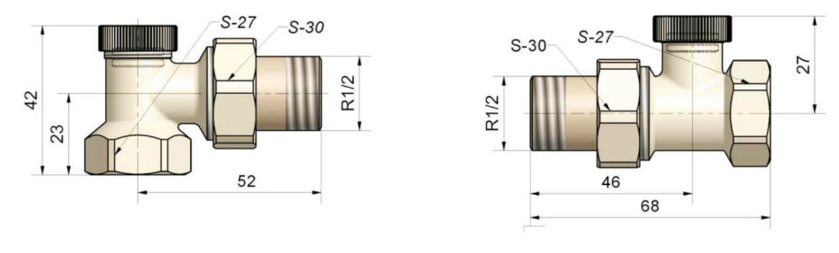 - Термостатичний клапан - кран на подачу з термостатичною вставкою різьбленням М30х1,5, на яку монтується термоголовка