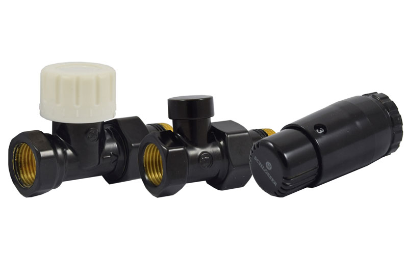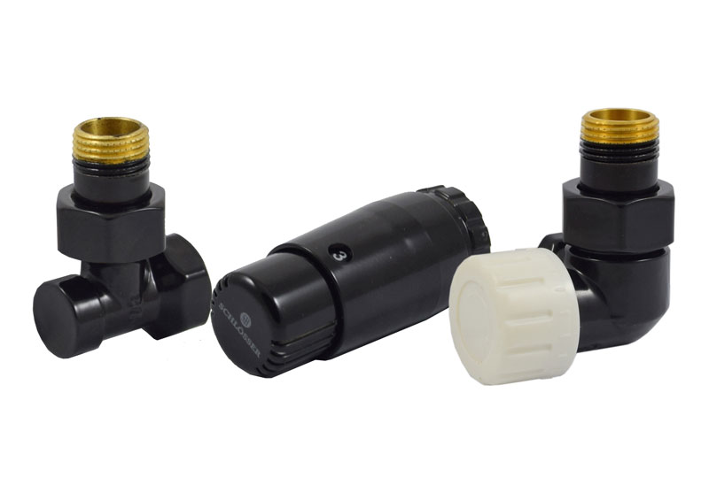 Комплект Schlosser Standard Mini в чорному кольорі призначений для бокового підключення радіатора.