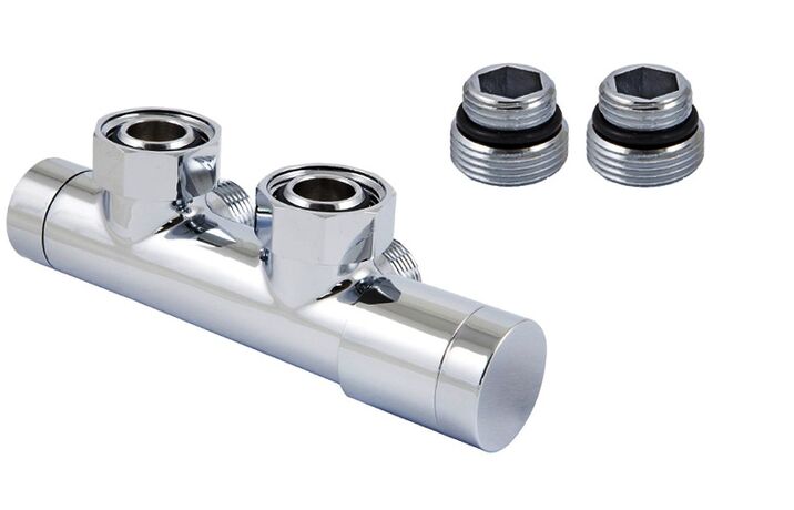 Комплект Duo-Plex&Chrome - набір для нижнього підключення радіаторів від польського виробника якісної дизайнерської арматури Schlosser. Дуже затребуваний для вертикальних радіаторів з нижнім виведенням труб з міжосьовою відстанню 50 мм. Бінокль має ручне регулювання, що дозволяє самостійно регулювати температуру в приміщенні та економити на опаленні.