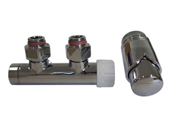 Комплект T Duo-Plex Chrome - термостатичний набір для нижнього підключення радіаторів від польського виробника якісної дизайнерської арматури ТМ Schlosser. Дуже затребуваний для вертикальних радіаторів без вентильної вставки з нижнім виведенням труб з міжосьовою відстанню 50 мм. Бінокль має термовставку, на яку монтується термоголовка, що дозволяє регулювати температури в приміщенні та заощаджувати на опалення.