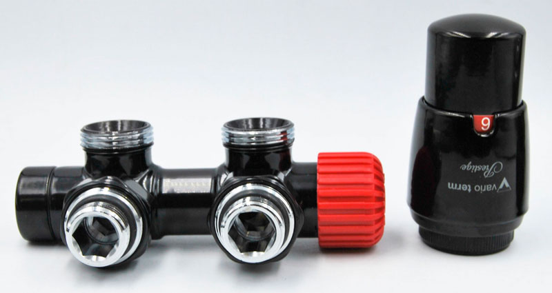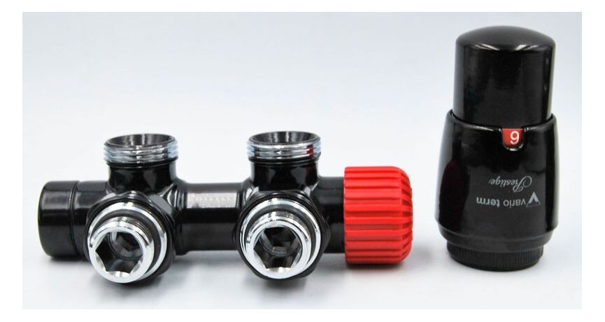 Представлений комплект від торгової марки Vario Term призначений, в першу чергу, для дизайнерських і вертикальних радіаторів, які в базовому варіанті поставляються без термоелемента. Функціонально Twins Black gloss дозволяє регулювати подачу теплоносія в радіатор і перекривати її повністю.