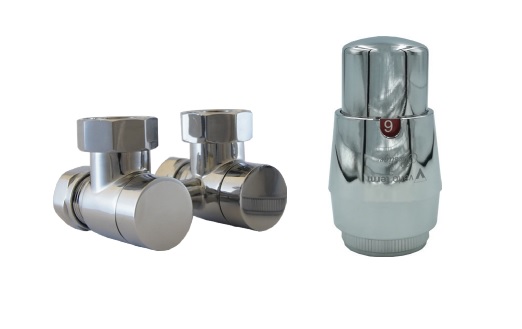 Комплект PREMIUM EXCLUSIVE Chrome від польської торгової марки Vario Term призначений для нижнього підключення радіаторів опалення в яких є термовставка. Складається він з двох елементів: крана для нижнього підключення з міжосьовою відстанню 50 мм та термоголовки з різьбовим з'єднанням М30х1,5. Кран виготовлений із латуні.