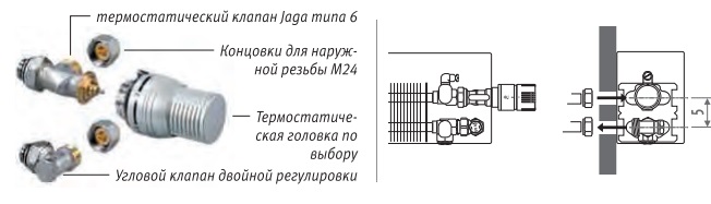 Цей комплект включає клапан Jaga, запірний клапан М24 і термоголовкою на вибір