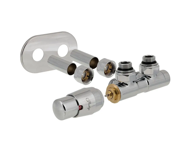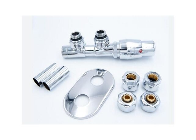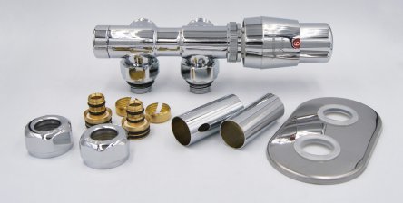 Комплект Vario Term All in one TWINS розроблений спеціально для дизайнерських радіаторів і сушок для рушників з нижнім підключенням з міжосьовою відстанню 50 мм. Даний комплект призначений для з'єднання опалювального приладу з трубами, головною його функцією є регулювання потоку води для підтримки заданої температури в приміщення, а також можливість перекриття потоку для ремонту або зняття батареї. Конструкція підключення TWINS дозволяє встановити його під радіатором головкою паралельно до стіни, що захищає її від випадкового пошкодження.