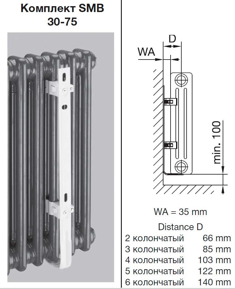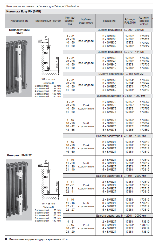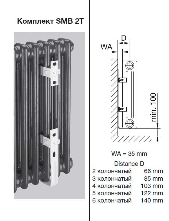Залежно від довжини радіатора (к-сті секцій) і висоти приладу набір кріплень може складатися з 2, 3, 4 і 5 кронштейнів.