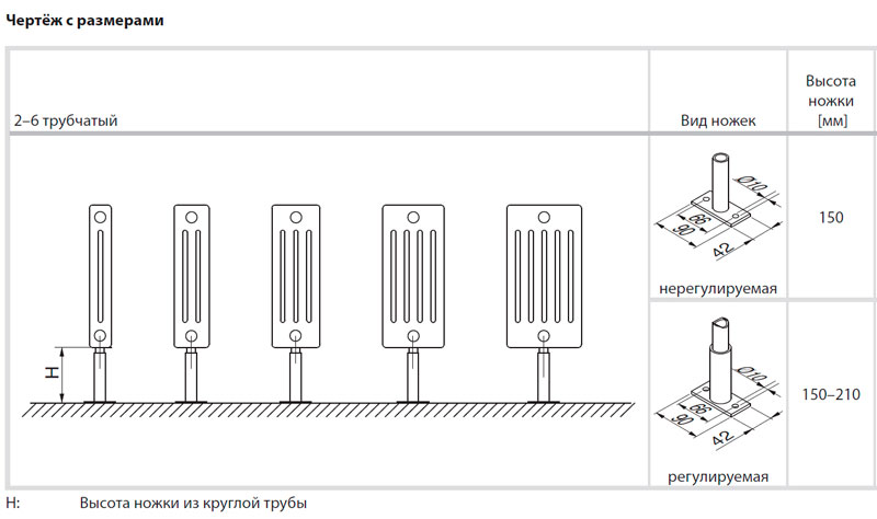 Підлогове кріплення трубчастих радіаторів Арбонія представлено в таких варіантах: