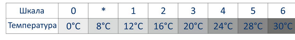 Шкала температур термоголовок Schlosser Mini