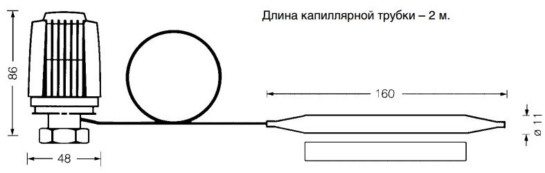 Габаритні розміри термоголовки - 86х48, капіляр довжиною - 160 мм та діаметром -11 мм. Довжина трубки – 2000 мм.