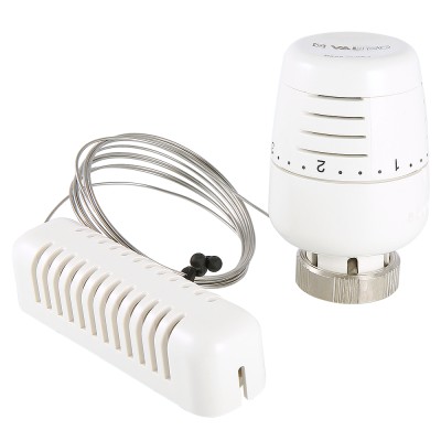 Представлена модель термоголовки призначена для монтажу на термостатичний клапан опалювального приладу, монтажного вузла або колектора. Особливість даної моделі є виносний датчик з капілярною трубкою довжиною 2 м, що забезпечує більш точне визначення температури в приміщення.